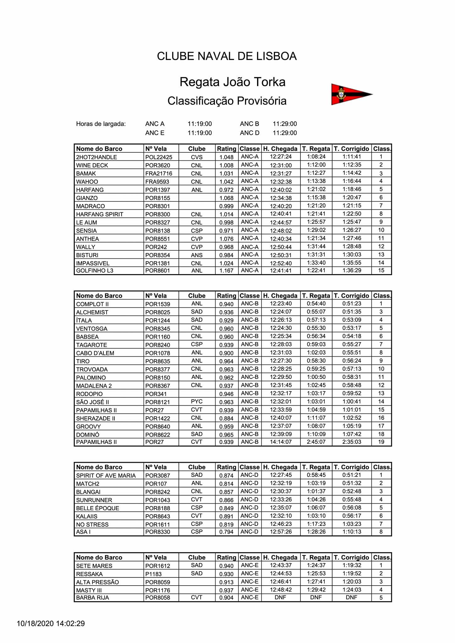Regata de Veleiros Cruzeiro ANC - Lisboa 2020: Regata João Torka