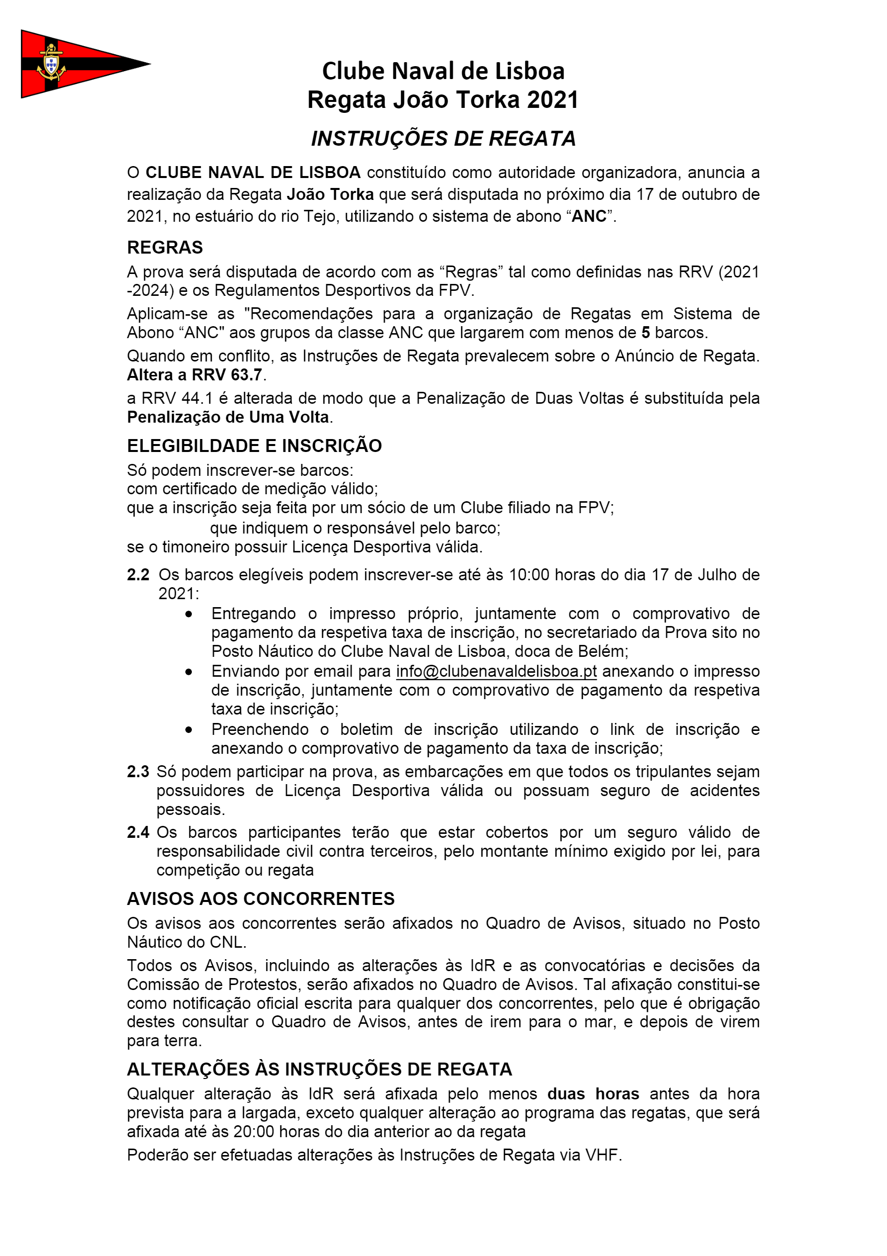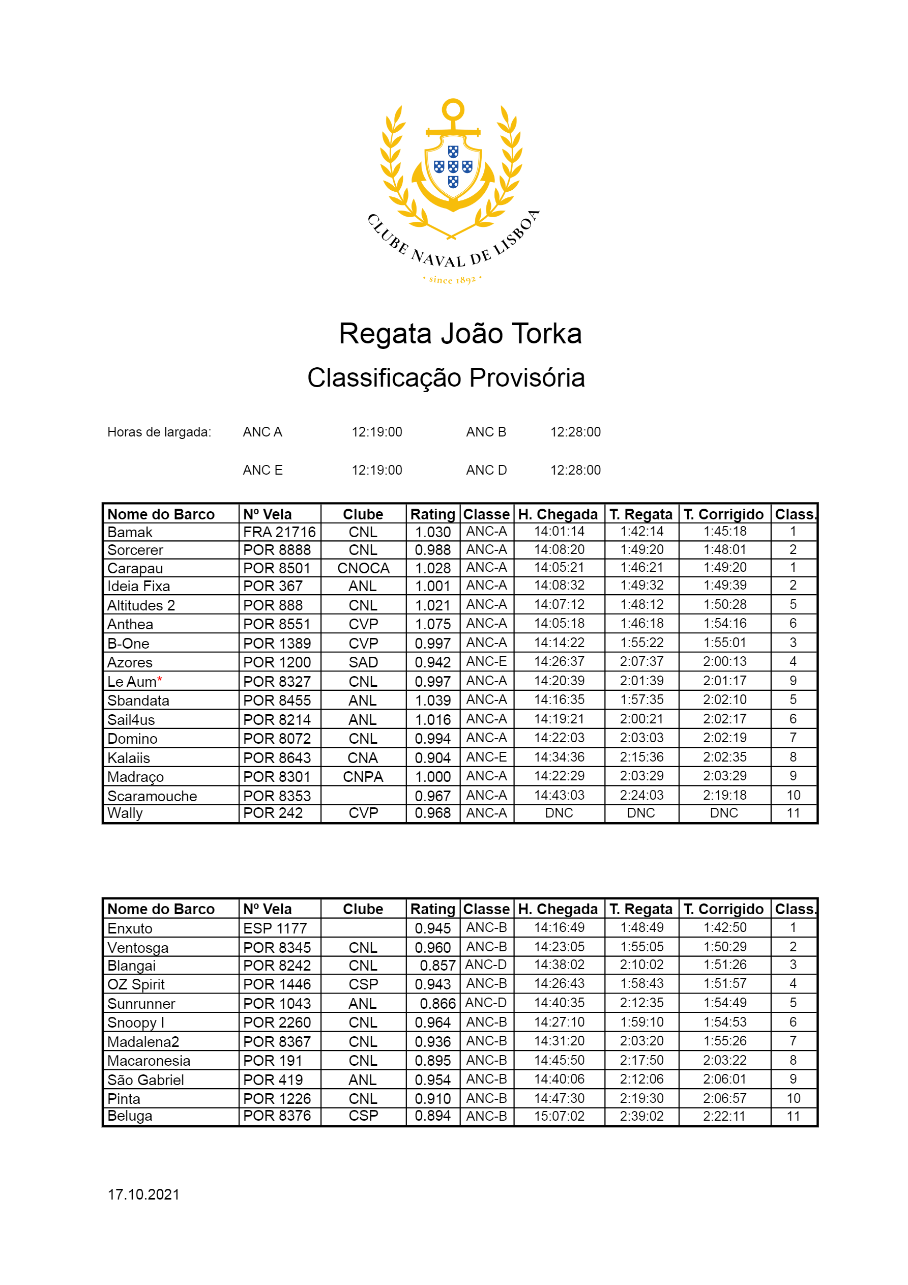 Regata de Veleiros Cruzeiro ANC - Lisboa 2021: Regata João Torka