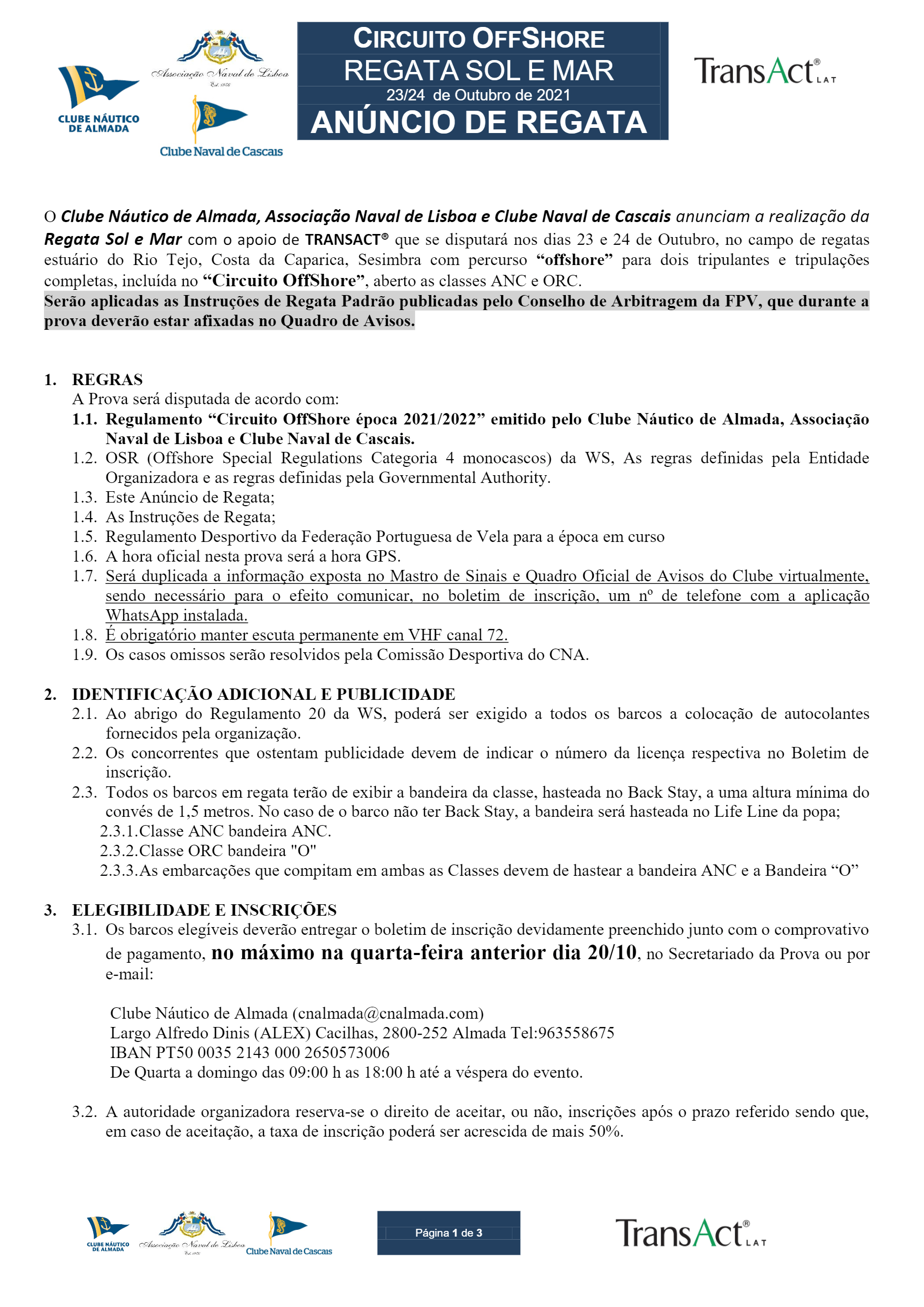 Regata de Veleiros Cruzeiro ANC - Lisboa 2021: Regata Sol e Mar